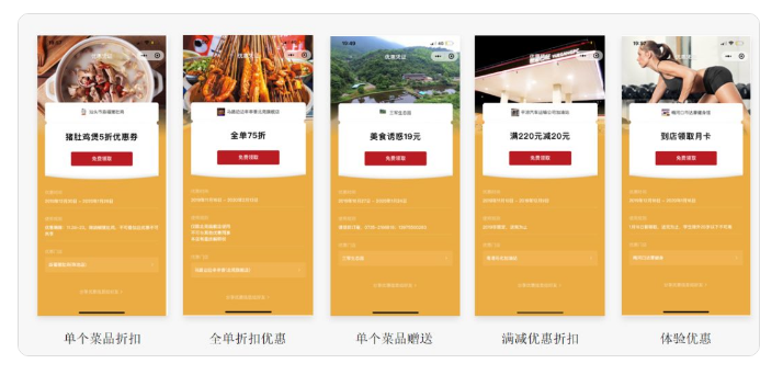 此外,借助文案優惠描述、門店定位顯示,多樣卡券派發,門店可加強用戶到店消費的行為驅動杠桿。