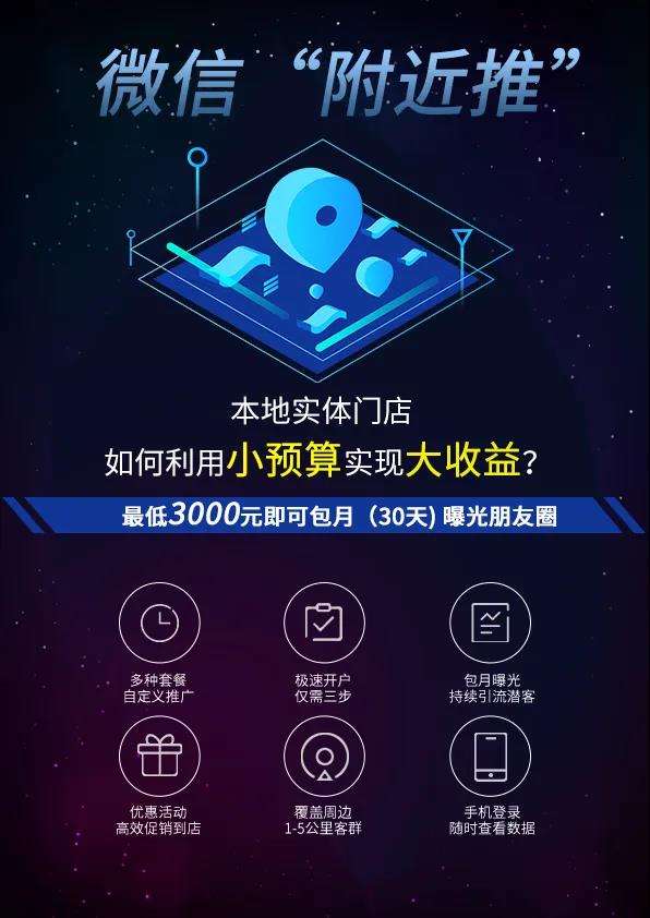總的來說就是附近推四大優勢:低成本、門檻低、小預算、*營銷。