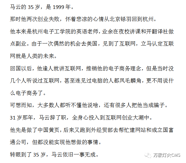 馬云35歲才創立阿里巴巴,此前兩次創業,都以失敗告終;